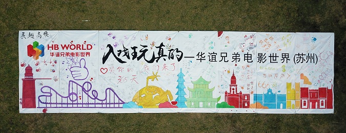 最让人难忘的环节应该就是共绘蓝图和航拍的团队LOGO秀了吧,华谊兄弟电影世界可爱的谊家人们一起用手中的画笔共绘我们心中对未来的期许。当航拍机飞起来的时候,每一个人都绽放出自己最灿烂的微笑,对着航拍机用力挥手。