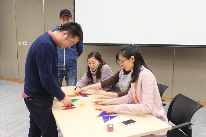 有学习就分享,通过这次的体验式教育,对我们每位伙伴内心都有很大的触动。团队七巧板的拼图方式也就折射出我们的工作中存在的各种问题。通过我们的老师的归纳,再由各个伙伴分享,使我们这次的体验式学习的价值真正的体现。