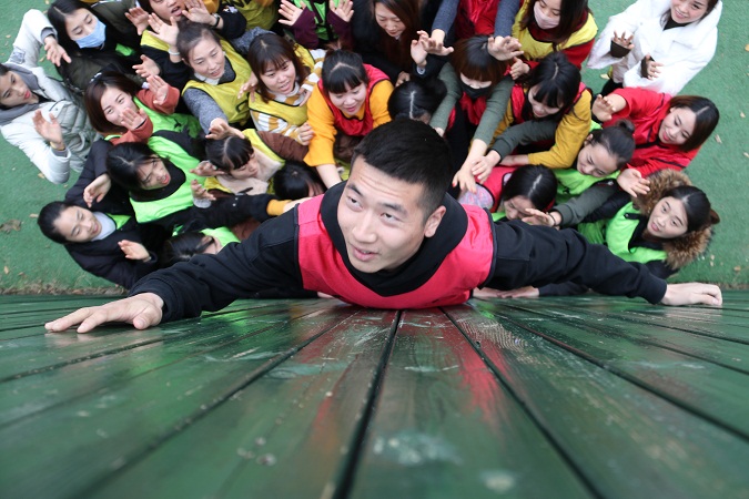 军训完后就是严肃活泼的拓展训练科目了,不同于军事化的训练,拓展训练是在一种快乐体验的氛围里进行学习与成长。有了上午的军训后,学员们的执行力与战斗力有了显著的提高,对接下来的挑战信心满满。