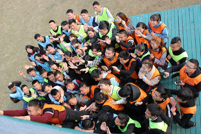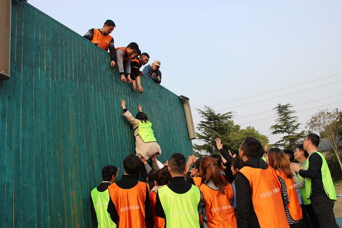 最后一个挑战是集体翻越一座4.2米的高墙,也叫毕业墙。很艰难,也充满了挑战。翻越这座墙也就像我们团队奋斗的缩影。在一个团队里,总有些人充当着我们的垫脚石,他们默默无闻,即使身上被踩满了血痕,却还是义无反顾的把我们向上举,我们甚至还来不及看清他们的长相;也要感谢我们上面的伙伴,在我们最无助、最危险的时候,拉了我们一把;更加要感激我们自己,只有自己的向上奋斗的决心和勇气,才能让我们能站在成功的高台上。