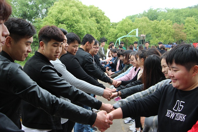 一天的拓展训练从我们的军训开始,动作整齐,声音洪亮,目光坚定,这是一个团队的士气与战斗力。而且军训也是磨练人的意志,练就坚韧不拔的精神。