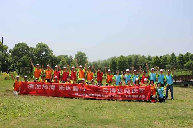今天我们昆山水务集团优秀的伙伴们来到了水八仙拓展基地,成为一道亮丽的风景。一天的拓展训练即将开始,我们已经拿出了最好的气势来迎接任何困难和挑战。