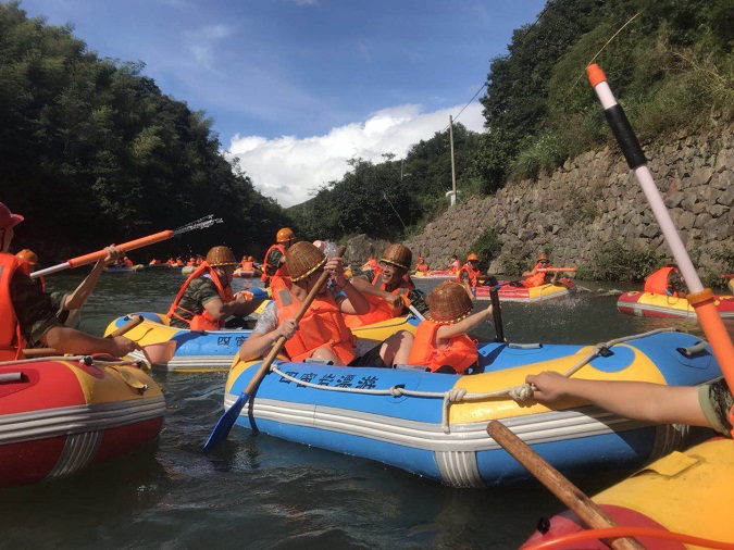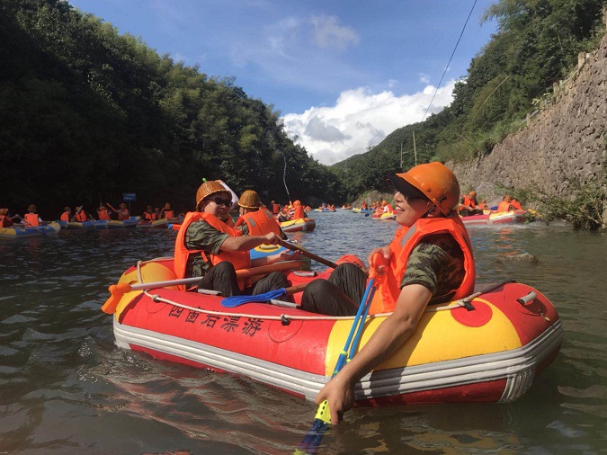 乘着一个无动力的小舟荡漾在激流的小河中,感受人类最原始的涉水方式,面对湍流的河水和刺激的落差,简直让人又爱又怕。清凉,欢乐,也是一次亲近自然之旅。我们的欢笑声在这峡谷中回荡。