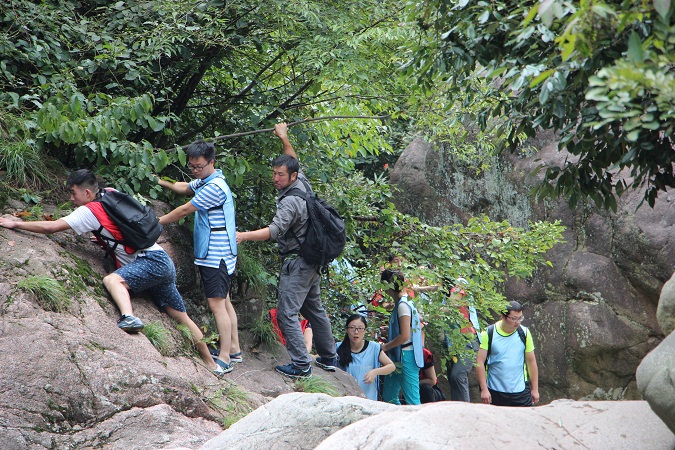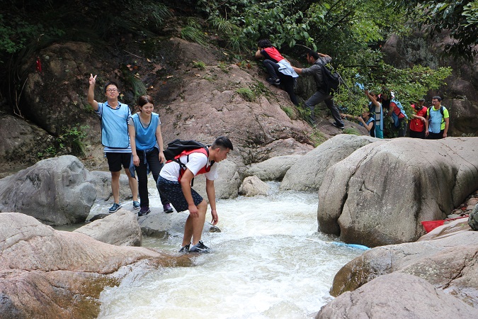 所谓溯溪,是由峡谷溪流的下游向上游,克服地形上的各处障碍,穷水之源而登山之巅的一项探险活动。从登山运动中独立出的溯溪, 以沿着溪谷逆流而上, 需要视地形而进行技术性攀登, 如瀑布或巨石。既然是一项户外运动,热身活动就必不可少。整个团队分为两个互助小组,共同来探索大自然吧。
