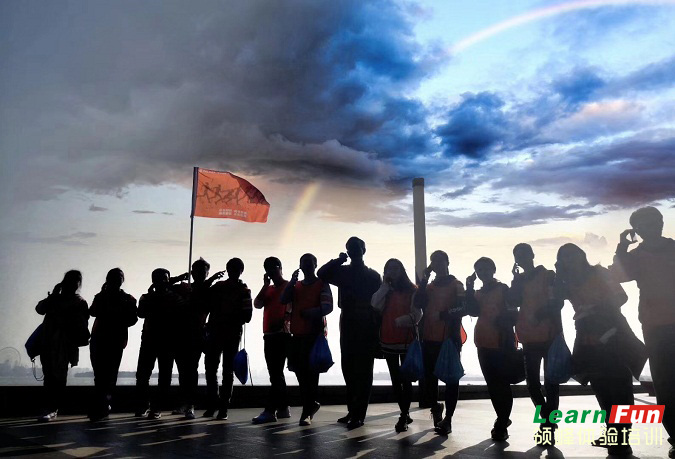 美好的一天从破冰开始,通过趣味性的互动游戏让我们敞开心扉,全身心的投入到团队活动中来。整齐的队伍,嘹亮的口号,我们学而思的各位伙伴已经准备好迎接15Km的徒步挑战了。